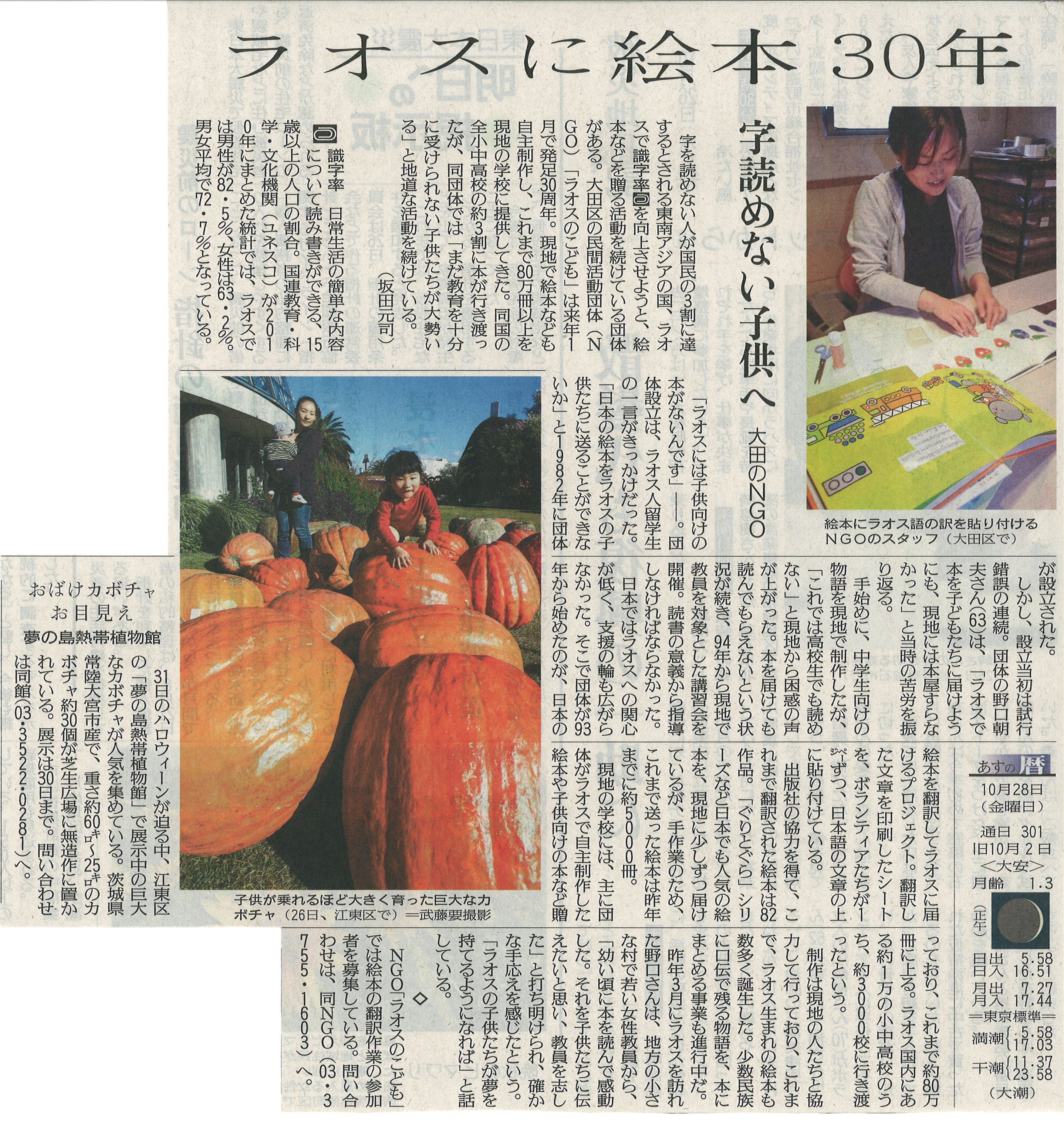 2011年10月27日読売新聞の朝刊に、私たちの活動に関する記事が掲載されました。